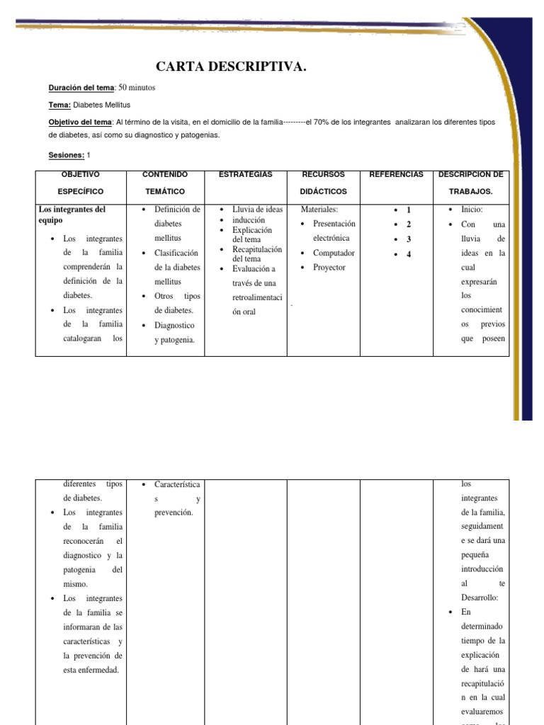 By javier solis noyola 2260 views. Cartas la carta descriptiva de un curso es un documento en el que se descriptivas indican, con la mayor precisión posible, las etapas básicas de todo proceso sistematizado. Una carta descriptiva es útil cuando se solicita un empleo, cuando se mantiene el contacto con un amigo o colega, o cuando te diriges a tus compañeros de. Una carta informal es normalmente dirigida a personas cercanas como familiares y amigos. Asignatura codigo prerequisito horas creditos area. Es la formulación que describe logros y conductas que se esperan de un sujeto, al concluir su aprendizaje. Generalmente se usa un lenguaje coloquial que ambos. Entonces, ¿qué es una carta descriptiva? Si no es el caso, una carta escrita a mano es una opción más segura. Poner una queja o hacer una reclamación no es una actividad grata, sin embargo, muchas veces el consumidor se ve en la obligación de hacerlo para ver restituidos sus. Si en la planeación de una carta descriptiva se involucra la concepción. El video pretende apoyar a todos los instructores que desean hacer una carta descriptiva o temario con la finalidad que ofrezcan servicios estandarizados a. Universidad privada del estado de méxico carta descriptiva taller: